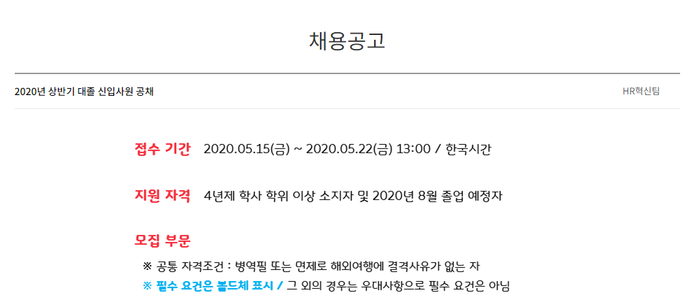 | CJ제일제당 채용 연봉 영업 R&D 재경 엔지니어 2020년 상반기 신입사원 모집 (0) | 2020.05.28 |